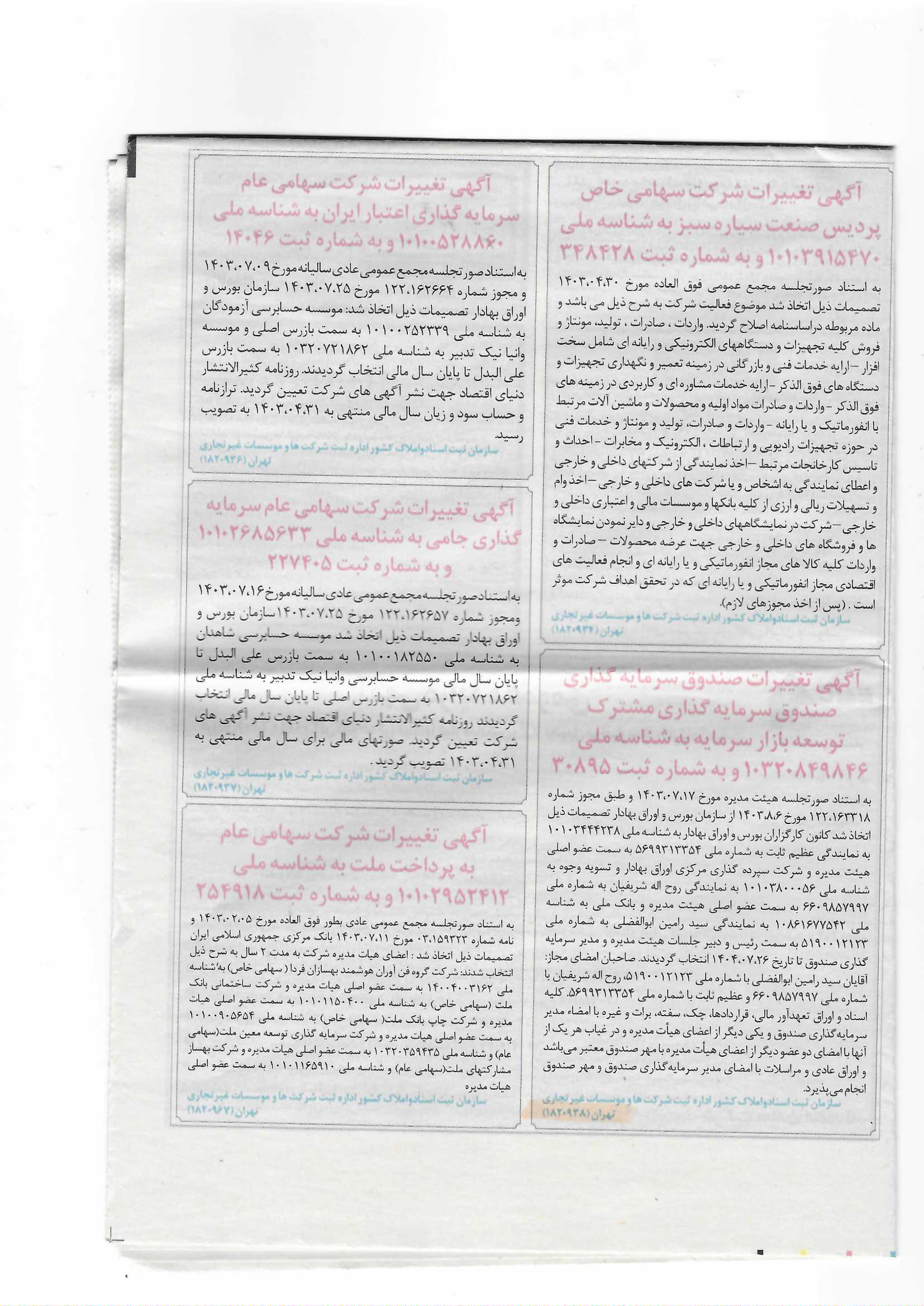 روزنامه رسمی مجمع ساعت ۱۵ مورخ ۱۴۰۳/۰۸/۰۱(تصویب صورتهای مالی)